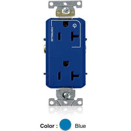Leviton 16352-1PB, Decora Plus Straight Blade Duplex Receptacle, Heavy-Duty Industrial Specification Grade, Split-Circuit, One Outlet Marked ''Controlled'', Smooth Face, 20A 125V, NEMA 5-20R, 2-Pole, 3-Wire, Back and Side Wire, Blue