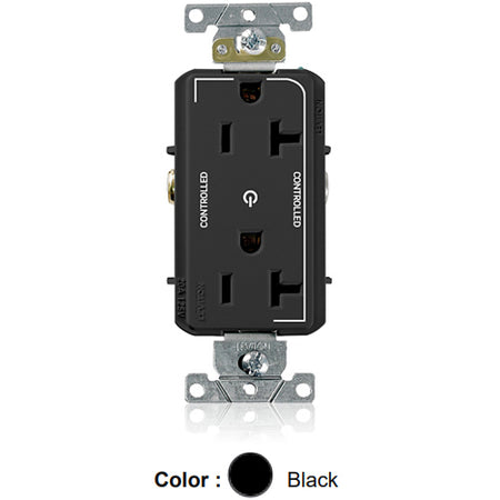 Leviton 16352-2PE, Decora Plus Straight Blade Duplex Receptacle, Heavy-Duty Industrial Specification Grade, Two Outlets Marked ''Controlled'', Smooth Face, 20A 125V, NEMA 5-20R, 2-Pole, 3-Wire, Back and Side Wire, Black
