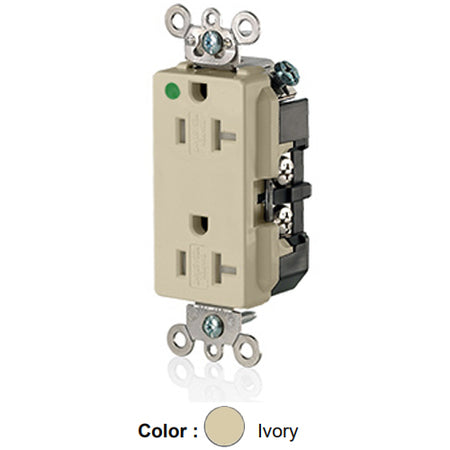 Leviton 16362-SGI, Decora Plus Straight Blade Duplex Receptacle, Extra Heavy-Duty Hospital Grade, Tamper-Resistant, Smooth Face, 20A 125V, NEMA 5-20R, 2-Pole, 3-Wire, Back and Side Wire, Ivory