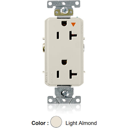 Leviton 16362-TIG, Decora Plus Straight Blade Duplex Receptacle, Heavy-Duty Industrial Specification Grade, Smooth Face, Isolated Ground, 20A 125V, NEMA 5-20R, 2-Pole, 3-Wire, Back and Side Wire, Light Almond