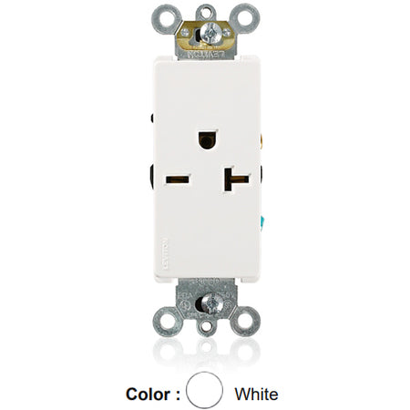 Leviton 16441-W, Decora Plus Straight Blade Single Receptacle, Commercial Specification Grade, Smooth Face, 20A 250V, NEMA 6-20R, 2-Pole, 3-Wire, Side Wire Only, White