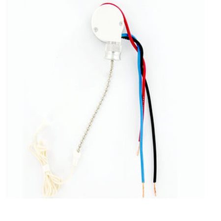 Leviton 1691-50, Single Pole Pull Chain Switch, Heavy Duty Industrial Grade, Two Speed, Four Positions, Black, Blue, Red Leads, Sequence ONE-OFF-TWO-OFF (L1, L2, L3, OFF)