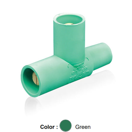 Leviton 16A21-UG, 16 Series Single Pole Cam-Type Paralleling Tee Adapter, 3-Way ''T'' Connector, Female-Male-Male, 400 Amp Max, Green