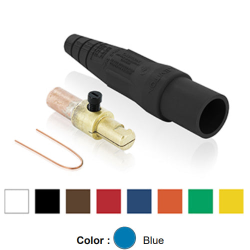 Leviton 16D26-UB, 16 Series Taper Nose Single Pole Cam-Type Male Plug, Contact & Insulator, Detachable, Industrial Grade, 300 Amp Max, 600 VAC/DC Max, Crimp Tube Termination, 1/0 - 2/0 AWG, Blue