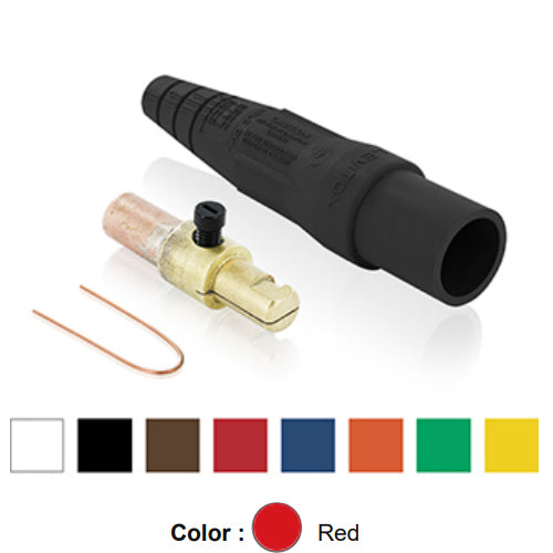 Leviton 16D26-UR, 16 Series Taper Nose Single Pole Cam-Type Male Plug, Contact & Insulator, Detachable, Industrial Grade, 300 Amp Max, 600 VAC/DC Max, Crimp Tube Termination, 1/0 - 2/0 AWG, Red