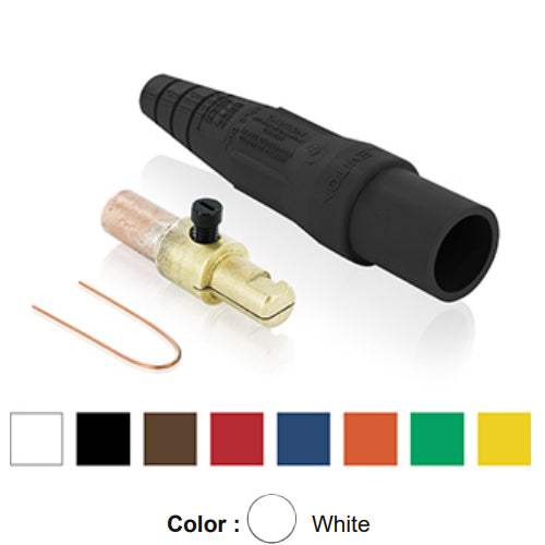 Leviton 16D26-UW, 16 Series Taper Nose Single Pole Cam-Type Male Plug, Contact & Insulator, Detachable, Industrial Grade, 300 Amp Max, 600 VAC/DC Max, Crimp Tube Termination, 1/0 - 2/0 AWG, White