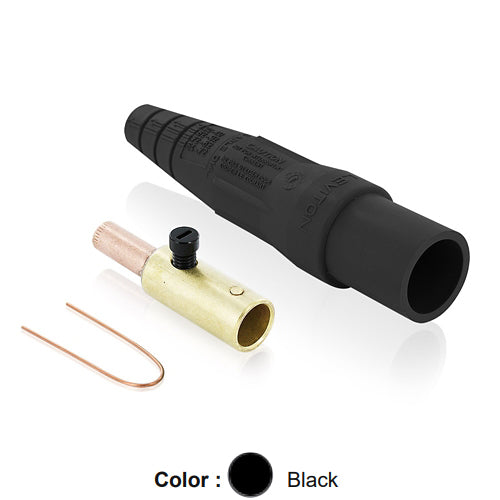 Leviton 16D28-UE, 16 Series Taper Nose Single Pole Cam-Type Male Plug, Contact & Insulator, Detachable, Industrial Grade, 400 Amp Max, 600 VAC/DC Max, Crimp Tube Termination, 3/0 - 4/0 AWG, Black