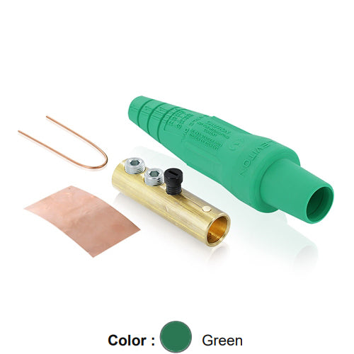 Leviton 16D31-UG, 16 Series Taper Nose Single Pole Cam-Type Female Plug, Contact & Insulator, Detachable, Industrial Grade, 300 Amp Max, 600 VAC/DC Max, Double Set Screw Termination, #2 - 2/0 AWG, Green