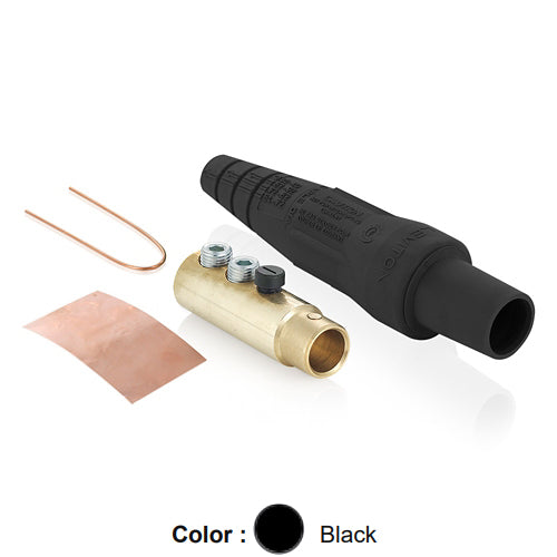 Leviton 16D33-UE, 16 Series Taper Nose Single Pole Cam-Type Female Plug, Contact & Insulator, Detachable, Industrial Grade, 400 Amp Max, 600 VAC/DC Max, Double Set Screw Termination, 2/0 - 4/0 AWG, Black