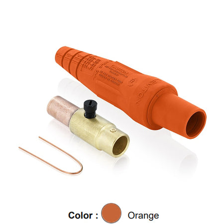 Leviton 16D37-UO, 16 Series Taper Nose Single Pole Cam-Type Female Plug, Contact & Insulator, Detachable, Industrial Grade, 400 Amp Max, 600 VAC/DC Max, Crimp Tube Termination, 3/0 - 4/0 AWG, Orange