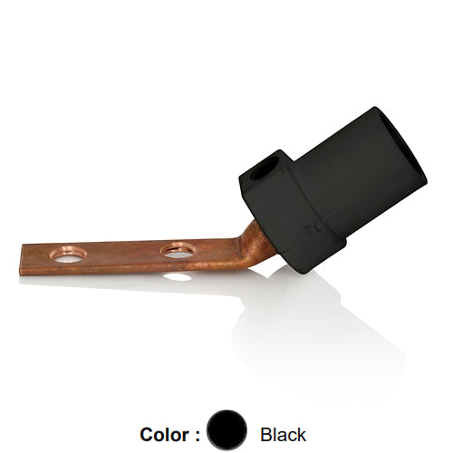 Leviton 16M21-2UE, 16 Series Single Pole Cam-Type Male Angle Terminal Connector, Industrial Grade, 2 Holes, Bus Bar Mount, #2 - 4/0 AWG, 400 Amp Max, Black