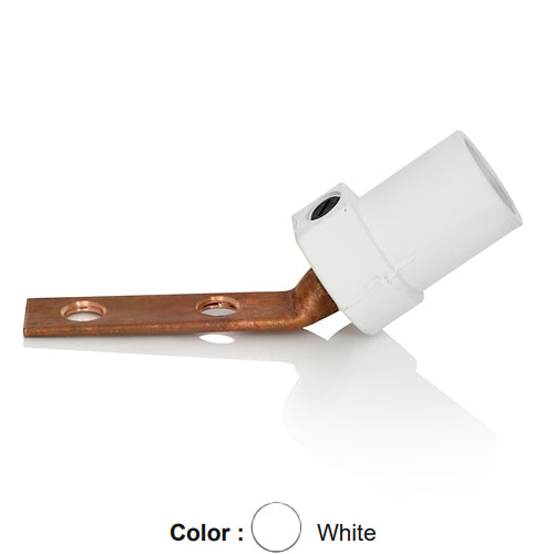 Leviton 16M21-2UW, 16 Series Single Pole Cam-Type Male Angle Terminal Connector, Industrial Grade, 2 Holes, Bus Bar Mount, #2 - 4/0 AWG, 400 Amp Max, White