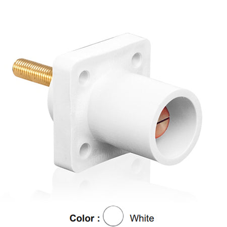 Leviton 16R23-4UW, 16 Series Single Pole Cam-Type Male Panel Mount Receptacle, Industrial Grade, 90-Degree, 1.5'' Length Threaded Stud Termination, #2 - 4/0 AWG, 400 Amp Max, White