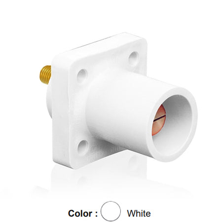 Leviton 16R23-UW, 16 Series Single Pole Cam-Type Male Panel Mount Receptacle, Industrial Grade, 90-Degree, 0.75'' Length Threaded Stud Termination, #2 - 4/0 AWG, 400 Amp Max, White