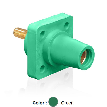 Leviton 16R24-1UG, 16 Series Single Pole Cam-Type Female Panel Mount Receptacle, Industrial Grade, 90-Degree, 1.125'' Length Threaded Stud Termination, #2 - 4/0 AWG, 400 Amp Max, Green