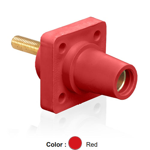 Leviton 16R24-4UR, 16 Series Single Pole Cam-Type Female Panel Mount Receptacle, Industrial Grade, 90-Degree, 1.5'' Length Threaded Stud Termination, #2 - 4/0 AWG, 400 Amp Max, Red
