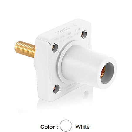 Leviton 16R26-1UW, 16 Series Single Pole Cam-Type Female Panel Mount Receptacle with Self-Clinching Nut, Industrial Grade, 90-Degree, 1.125'' Length Threaded Stud Termination, #2 - 4/0 AWG, 400 Amp Max, White