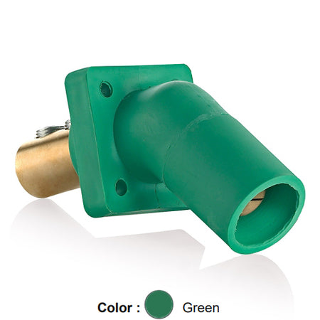Leviton 16R27-UG, 16 Series Single Pole Cam-Type Male Panel Mount Receptacle, Industrial Grade, 45-Degree, Double Set Screw Termination, 2/0 - 4/0 AWG, 400 Amp Max, Green