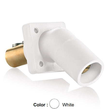 Leviton 16R27-UW, 16 Series Single Pole Cam-Type Male Panel Mount Receptacle, Industrial Grade, 45-Degree, Double Set Screw Termination, 2/0 - 4/0 AWG, 400 Amp Max, White