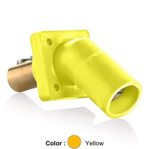 Leviton 16R27-UY, 16 Series Single Pole Cam-Type Male Panel Mount Receptacle, Industrial Grade, 45-Degree, Double Set Screw Termination, 2/0 - 4/0 AWG, 400 Amp Max, Yellow