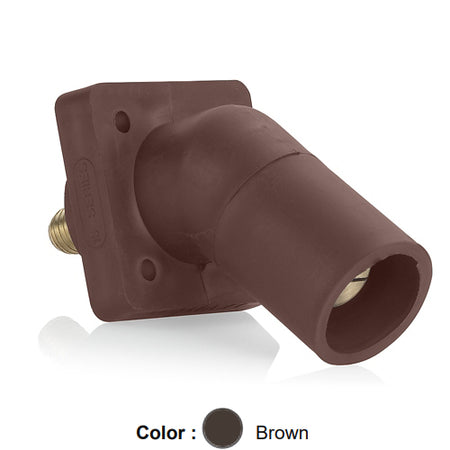Leviton 16R29-UH, 16 Series Single Pole Cam-Type Male Panel Mount Receptacle, Industrial Grade, 45-Degree, 0.75'' Length Threaded Stud Termination, #2 - 4/0 AWG, 400 Amp Max, Brown