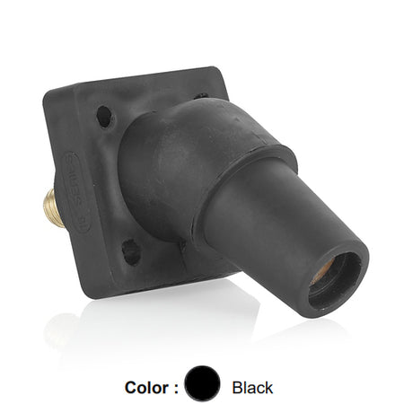 Leviton 16R30-UE, 16 Series Single Pole Cam-Type Female Panel Mount Receptacle, Industrial Grade, 45-Degree, 0.75'' Length Threaded Stud Termination, #2 - 4/0 AWG, 400 Amp Max, Black