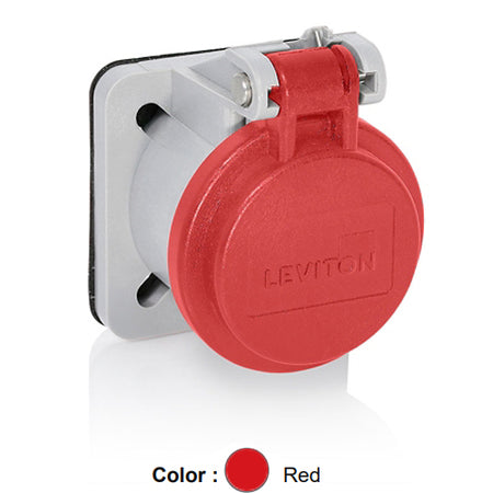 Leviton 16S31-UR, 16 Series Panel Receptacle Enclosure with Automatic Closing Lid, Male/Female, Thermoplastic Housing and Cover, Stainless Steel Torsion Spring, Red