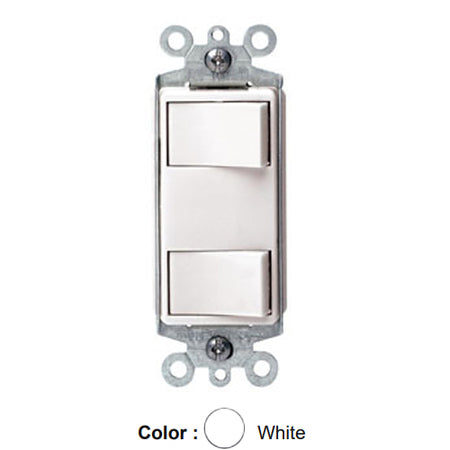 Leviton 1754-W, Decora Dual Rocker Combination Switch, Individual Switches 15A 120V / Device Total 20A 120V, Ground Screw Terminals and Push-in Wiring, White