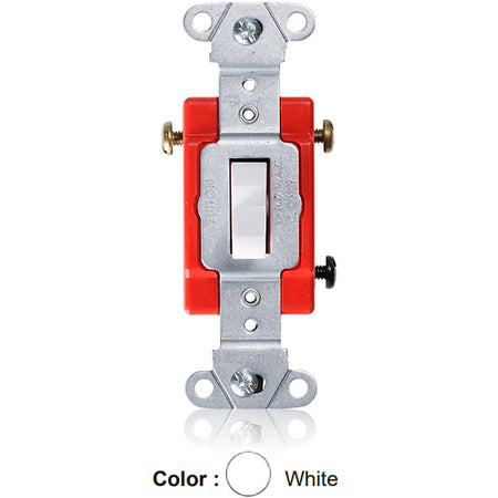 Leviton 18223-W, Standard 3-Way Toggle Switch, Industrial Specification Grade, Canadian, 20A 347V AC, Non-Grounding, Back or Side Wire, White
