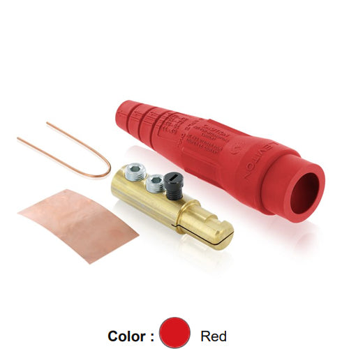 Leviton 18D22-UR, 18 Series Ball Nose Single Pole Cam-Type Male Plug, Detachable, Industrial Grade, Double Set Screw Termination, #2 - 2/0 AWG, 300 Amp Max, Red