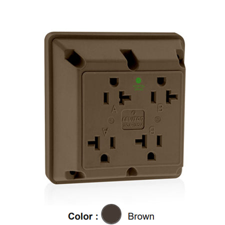 Leviton 21254-H, 4-in-1 Quadruplex Receptacle, Heavy-Duty Hospital Grade, 20A 125V, NEMA 5-15R, 2-Pole, 3-Wire, Side Wire Only, Brown