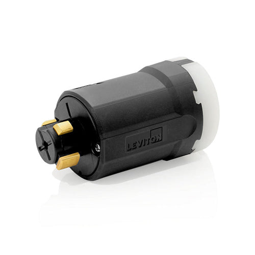 Leviton 21415-LB, Locking Plug, Industrial Grade, Power Interrupting Device, 30/20A 250VDC/600VAC, 3-Pole, 4-Wire, Grounding, Black