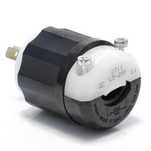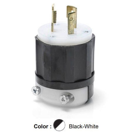 Leviton 2311, Locking Plug, Extra Heavy Duty, Industrial Grade, 20A 125V, NEMA L5-20P, 2-Pole, 3-Wire, Grounding, Black/White