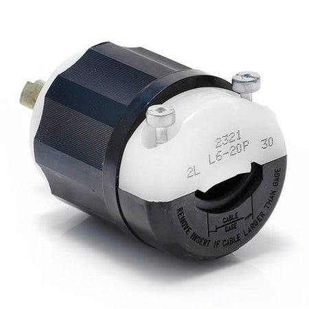 Leviton 2321, Locking Plug, Industrial Grade, 20A 250V, NEMA L6-20P, 2-Pole, 3-Wire, Grounding, Black/White