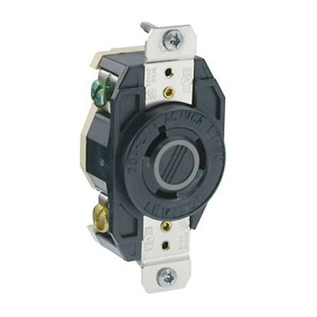 Leviton 2330, Flush Mount Locking Receptacle, Industrial Grade, 20A 277V, NEMA L7-20R, 2-Pole, 3-Wire, Grounding, Black
