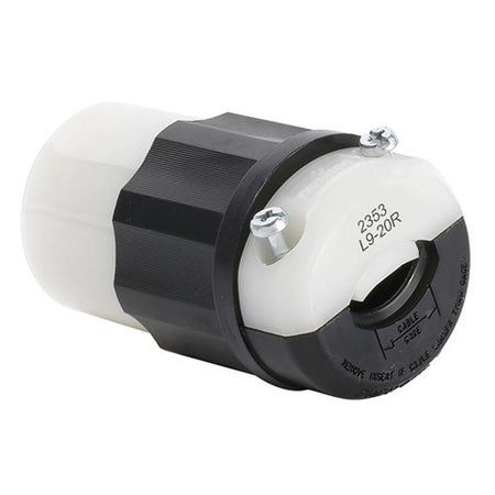 Leviton 2353, Locking Connector, Industrial Grade, 20A 600V, NEMA L9-20R, 2-Pole, 3-Wire, Grounding, Black/White