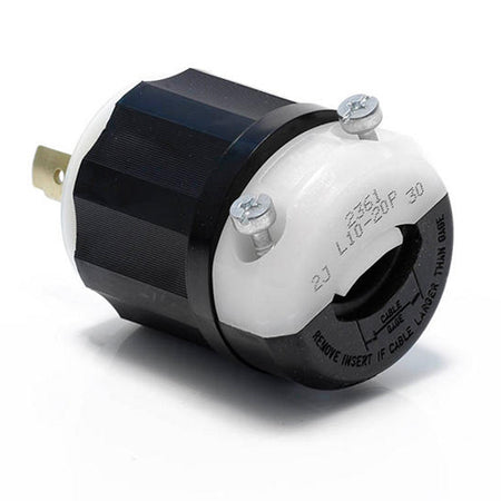 Leviton 2361, Locking Plug, Industrial Grade, 20A 125/250V, NEMA L10-20P, 3-Pole, 3-Wire, Non-Grounding, Black/White