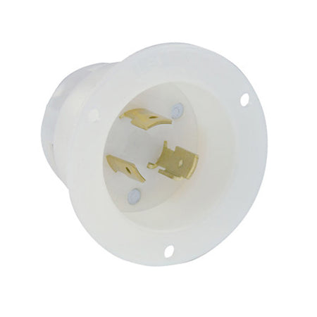 Leviton 2365, Flanged Inlet Locking Receptacle, Industrial Grade, 20A 125/250V, NEMA L10-20P, 3-Pole, 3-Wire, Non-Grounding, White