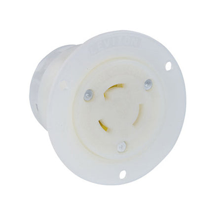 Leviton 2366, Flanged Outlet Locking Receptacle, Industrial Grade, 20A 125/250V, NEMA L10-20R, 3-Pole, 3-Wire, Non-Grounding, White