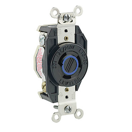 Leviton 2370, Flush Mount Locking Receptacle, Industrial Grade, 3-Phase, 20A 250V, NEMA L11-20R, 3-Pole, 3-Wire, Non-Grounding, Black