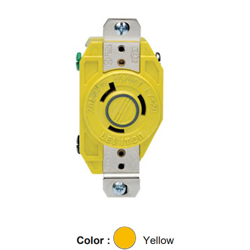 Leviton 23CM-30, Flush Mount Locking Receptacle, Industrial Grade, Corrosion-Resistant, 20A 277V, NEMA L7-20R, 2-Pole, 3-Wire, Grounding, Yellow