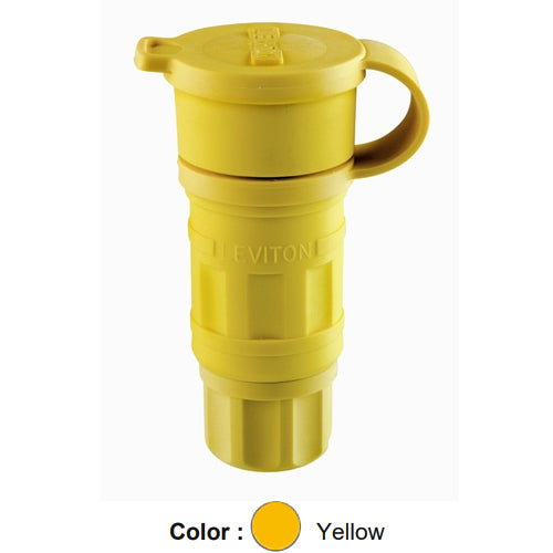 Leviton 23W07, Wetguard Watertight Locking Connector, Industrial Grade, 20A 347V, NEMA L24-20R, 2-Pole, 3-Wire, Grounding, Yellow