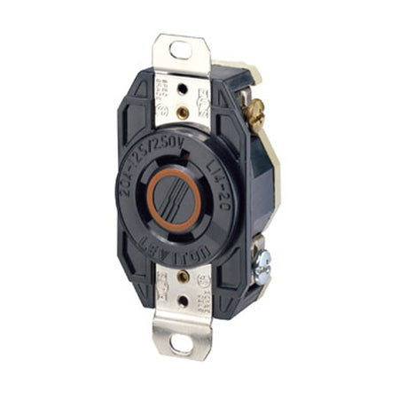 Leviton 2410, Flush Mount Locking Receptacle, Industrial Grade, 20A 125/250V, NEMA L14-20R, 3-Pole, 4-Wire, Grounding, Black