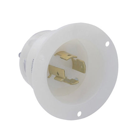 Leviton 2425, Flanged Inlet Locking Receptacle, Industrial Grade, 20A 250V, 3-Phase, NEMA L15-20P, 3-Pole, 4-Wire, Grounding, White