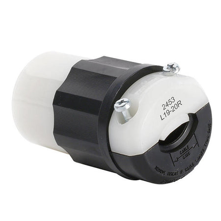 Leviton 2453, Locking Connector, Industrial Grade, 20A 277/480V, 3-Phase Y, NEMA L19-20R, 4-Pole, 4-Wire, Non-Grounding, Black/White