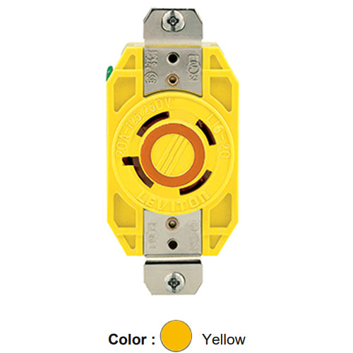 Leviton 24CM-30, Flush Mount Locking Receptacle, Industrial Grade, Corrosion-Resistant, 3-Phase, 20A 480V, NEMA L16-20R, 3-Pole, 4-Wire, Grounding, Yellow