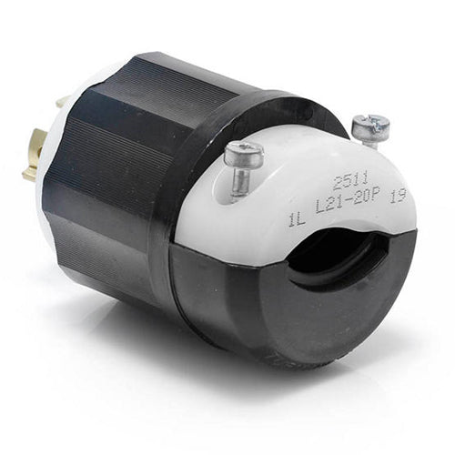 Leviton 2511, Locking Plug, Industrial Grade, 20A 120/208V, 3-Phase Y, NEMA L21-20P, 4-Pole, 5-Wire, Grounding, Black/White