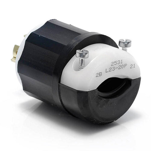 Leviton 2531, Locking Plug, Industrial Grade, 20A 347/600V, 3-Phase Y, NEMA L23-20P, 4-Pole, 5-Wire, Grounding, Black/White