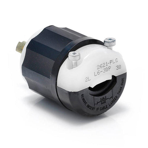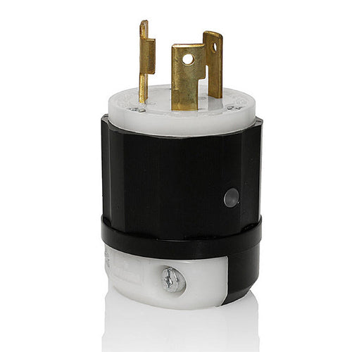 Leviton 2621-PLC, Locking Plug, Industrial Grade, Power Indication, 30A 250V, NEMA L6-30P, 2-Pole, 3-Wire, Grounding, Black/White