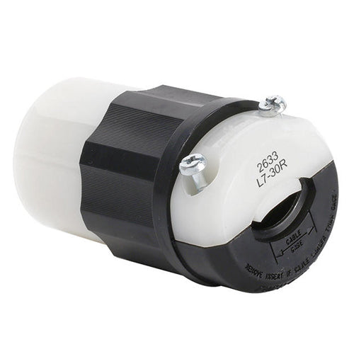 Leviton 2633, Locking Connector, Industrial Grade, 30A 277V, NEMA L7-30R, 2-Pole, 3-Wire, Grounding, Black/White